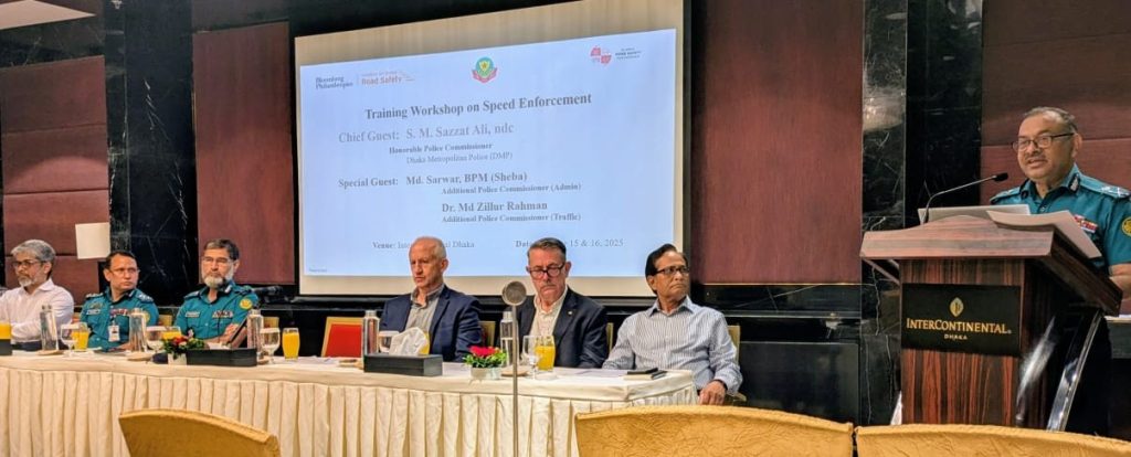 Dhaka Metropolitan Police (DMP) Commissioner SM Sazzat Ali made these remarks while speaking as the chief guest at the inaugural session of a day-long training titled `Speed Enforcement’, held this morning at a hotel in Dhaka. Special guests at the event included DMP Additional Police Commissioner (Admin) Md. Sarwar (BPM-Sheba), Additional Police Commissioner (Traffic) Dr. Md. Zillur Rahman, and Superintendent Engineer of Dhaka North City Corporation (DNCC) Khandaker Mahbub Alam. The event was presided over by BIGRS Coordinator and Additional Secretary (Retd.) Md. Abdul Wadud. Senior Road Policing Advisors from GRSP, Michael Phyland and Paul Simcox, were also present.