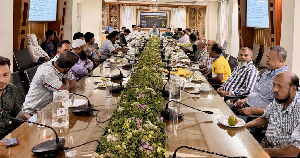 Road crash survivor Md. Rubel, an autorickshaw driver who suffered permanent disability, shared his experience at the meeting. He said a speeding truck hit his rickshaw from behind in 2021 and dragged him 400–500 meters without stopping, leaving him unable to walk. He urged all drivers to maintain controlled speed to prevent such tragedies.