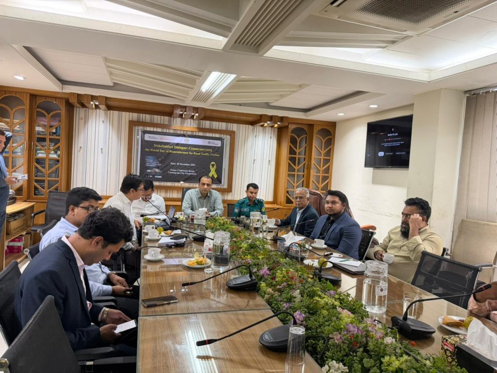 Chattogram City Corporation (CCC) organized a stakeholder awareness meeting today (Thursday, 20 November) at the conference room of the Nagar Bhaban under to commemorate World Day of Remembrance for Road Traffic Victims to enhance road safety in the city. The event was organized with technical support from the Bloomberg Philanthropies Initiative for Global Road Safety (BIGRS) and Vital Strategies. During the meeting, 25 CCC drivers were briefed on the importance of adhering to speed limits in the city to ensure road safety.